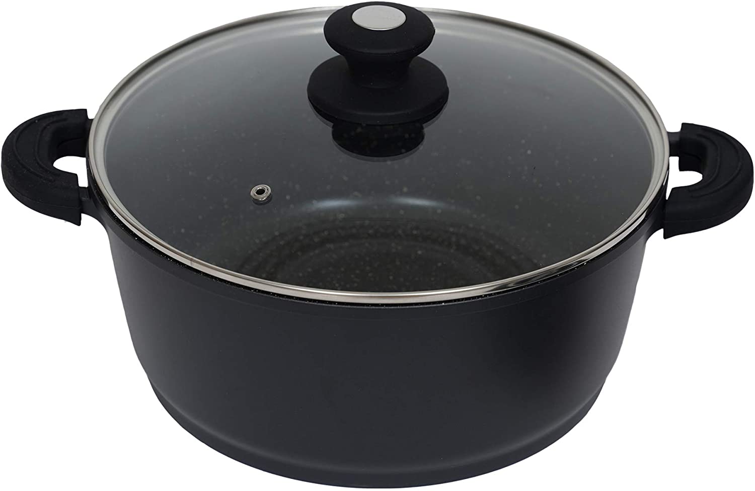 Marmite / Faitout revêtement Pierre antiadhésif renforcé 3 Couches GREBLON C3 sans PFOA avec Couvercle en Verre et Manchons Amovibles en Silicone.