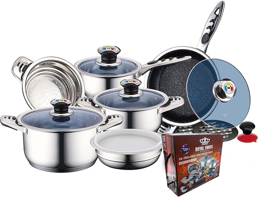 Batterie de cuisine 16 pièces en Acier inoxydable