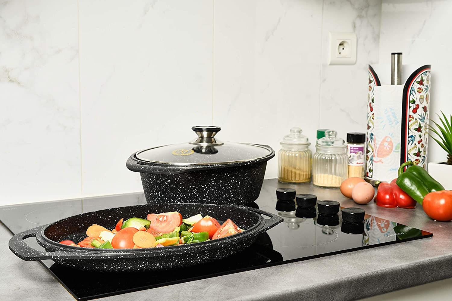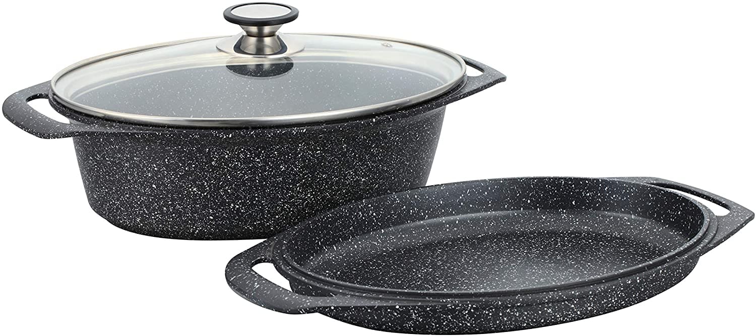 Cocotte ovale 3 Pièces Fonte d’Aluminium – Revêtement type pierre