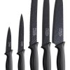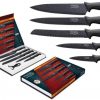 – Un couteau du chef + un couteau à découper + un couteau à pain + un couteau à légume + un couteau d’office + un éplucheur offert en cadeau !