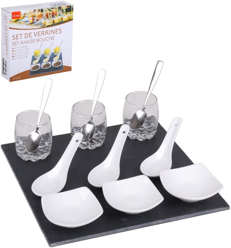 Promobo – Coffret Dégustation 13 Pièces Verrines Mises En Bouche Pour 3 Personnes Plateau Ardoise