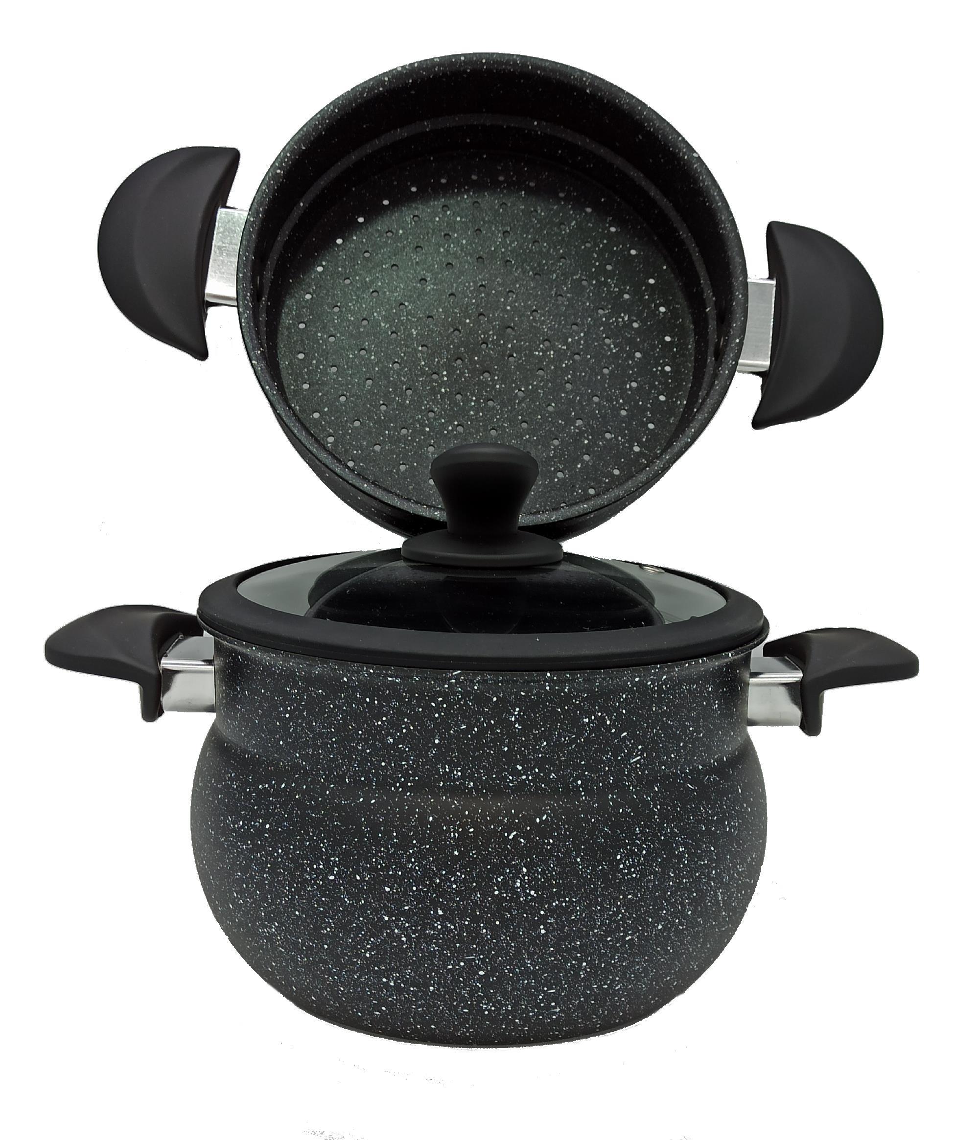 - Les poignées siliconés du couscoussier et l’anneau siliconé surmontant le couvercle, assure une protection de la chaleur de cuisson