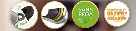 - La haute qualité de revêtement permet une cuisson saine sans ou avec très peu de graisse