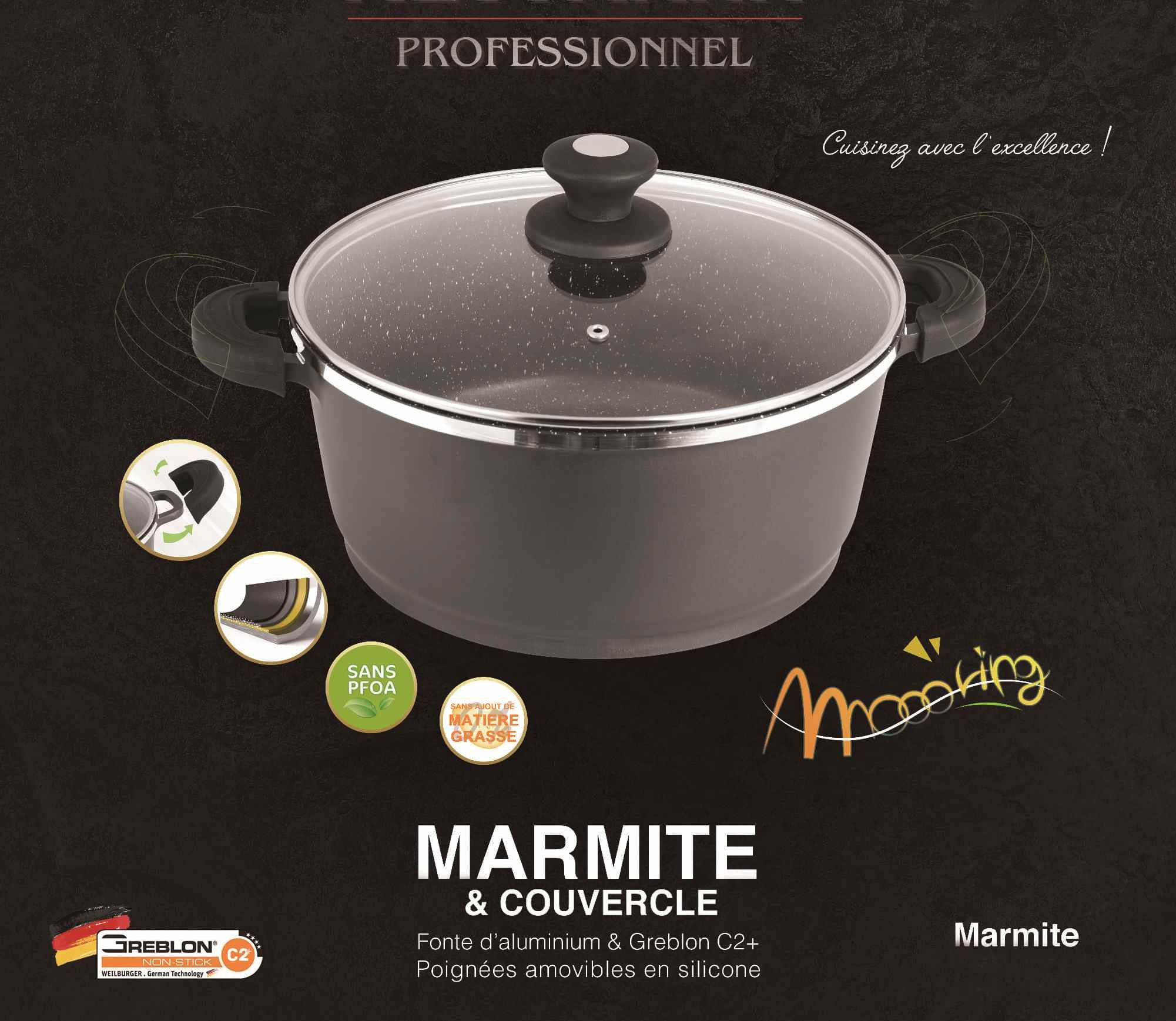 - Faitout / Marmite livré avec son Couvercle en Verre et ses 2 Manchons en Silicone.