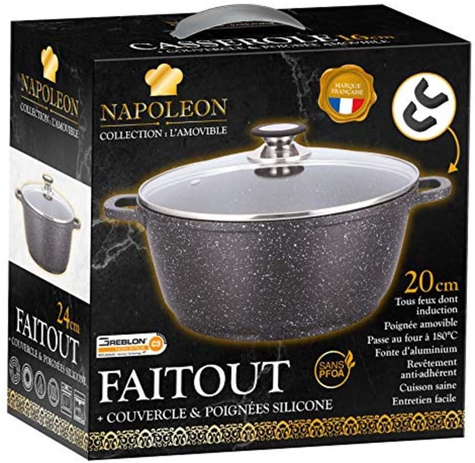 Faitout avec couvercle et poignées en silicones. Collection l’amovible. Article en fonte d’aluminium. Le revêtement anti-adhérent garantit une cuisson saine et un entretien facile.