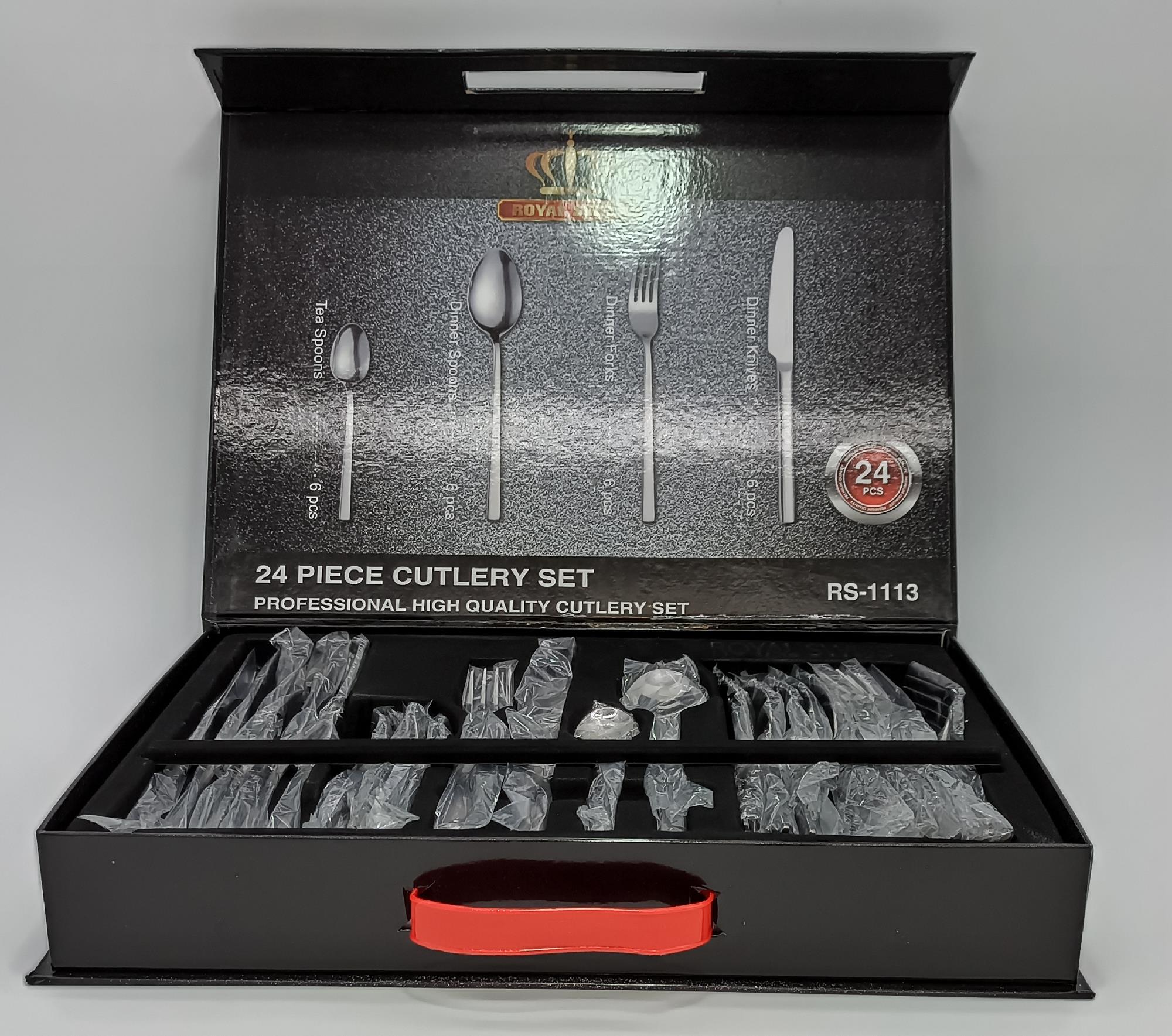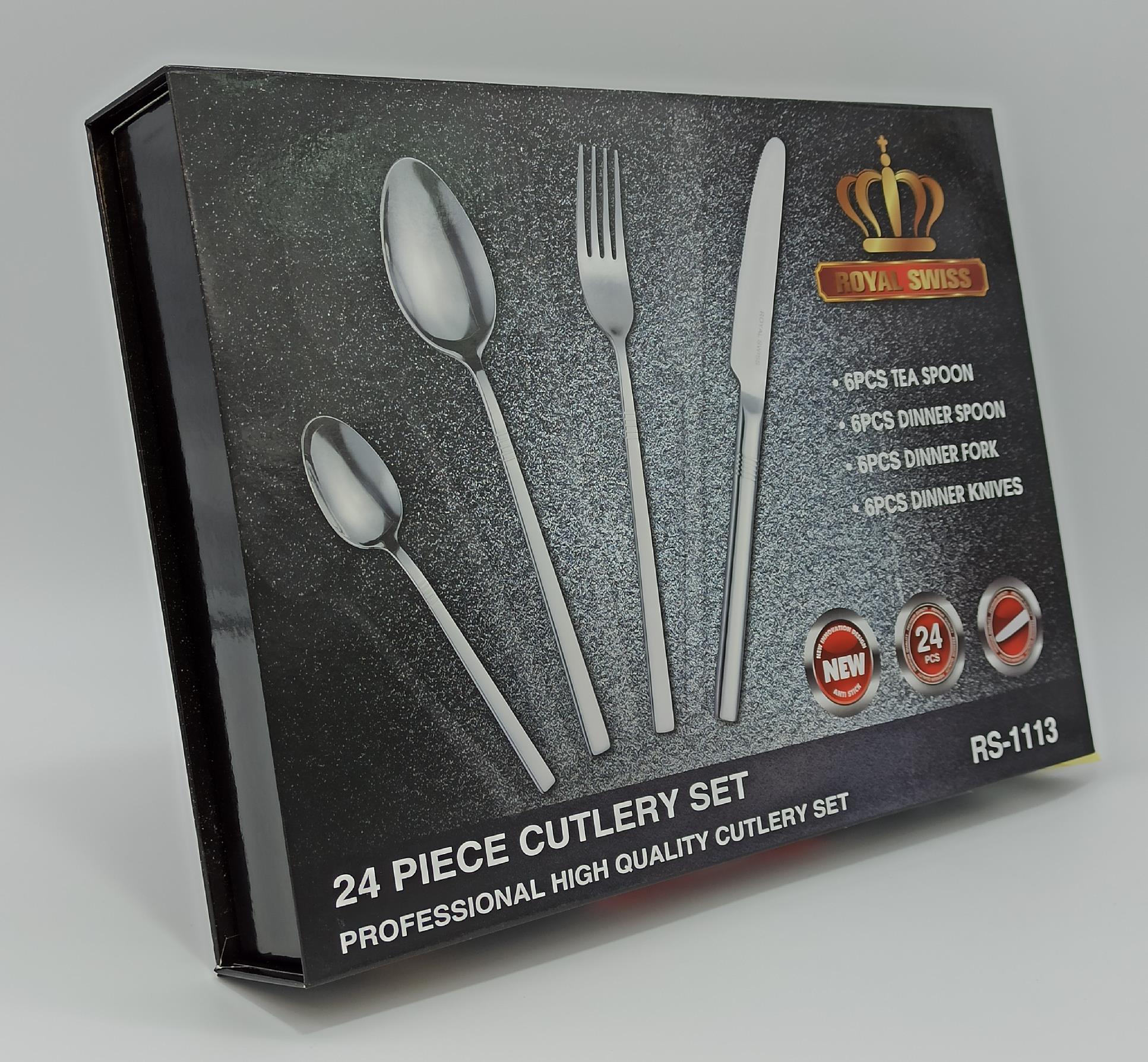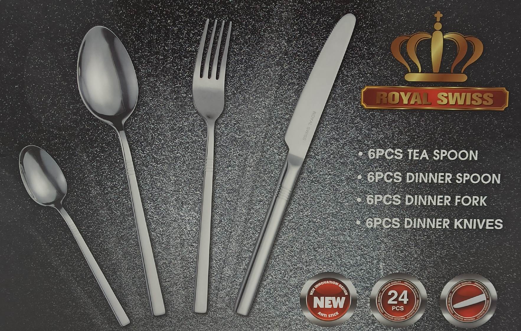 – Contenu : 6 couteaux, 6 cuillères; 6 fourchettes; 6 petites cuillères à café