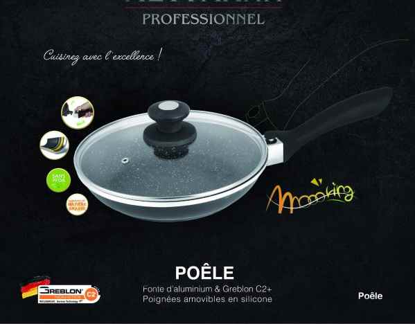 - Structure en fonte d’aluminium avec Revêtement en Greblon C2+ de Technologie Allemande Antiadhesif garantie sans PFOA