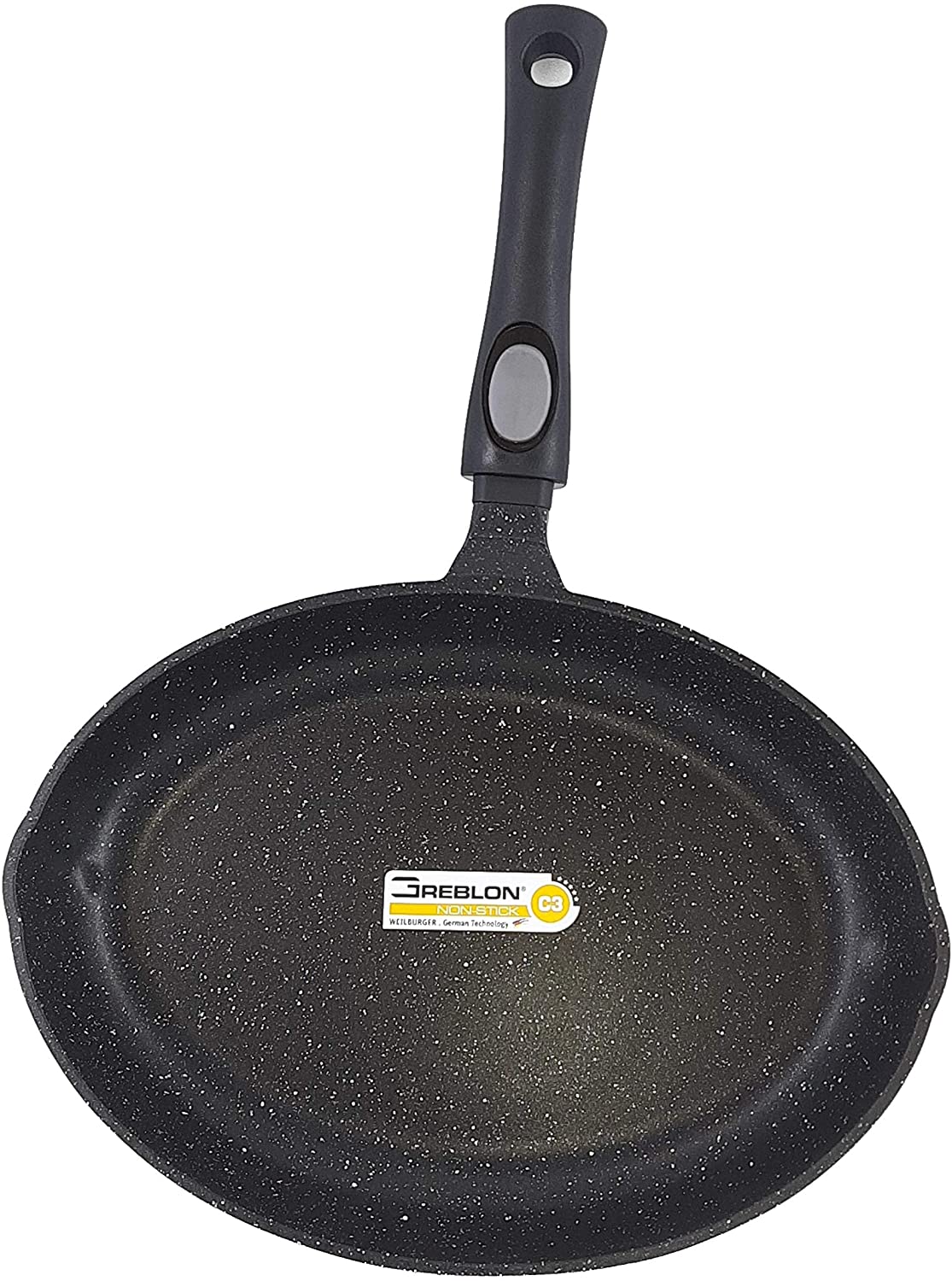 - Performances supérieures: Un revêtement le plus durable et le plus résistant du marché grâce au revêtement en GREBLON C3 de technologie Allemande (3 couches renforcées de céramique anti-adhérente). Sa forme en aluminium est indéformable avec son revêtement anti-adhérent.
