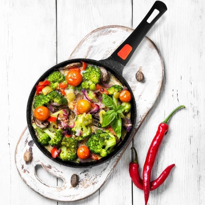 Poele anti-adhésif idéale pour la préparation des plats sains et équilibrés. Vous n’aurez même plus besoin de la couvrir de matière grasse avant l’utilisation comme vous aviez l’habitude de le faire.