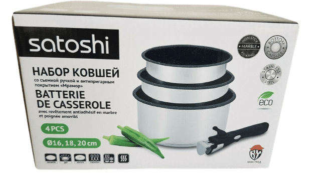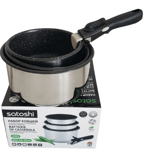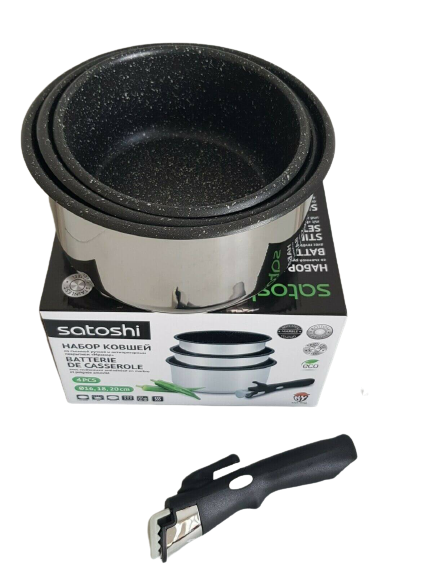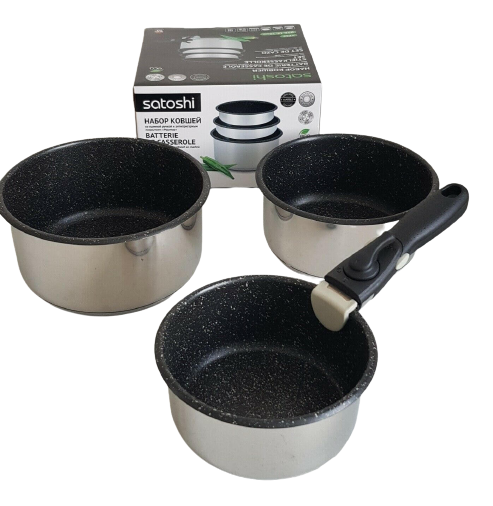 Découvrez ce set amovible de 3 casseroles 16, 18 et 20 cm SATOSHI avec poignée amovible.