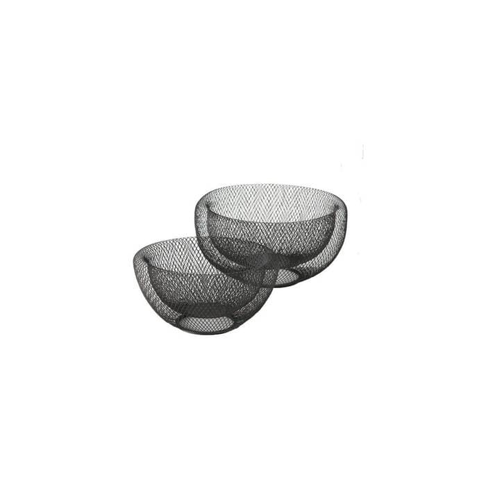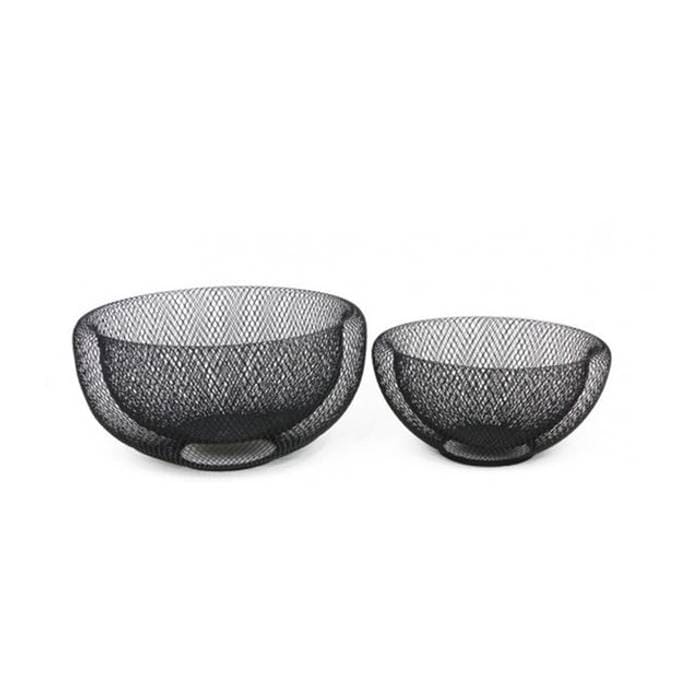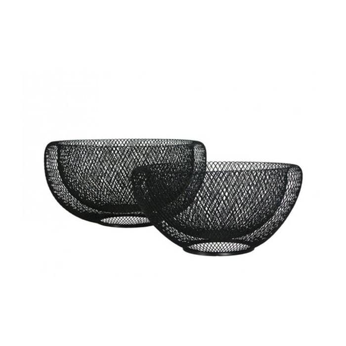 Set de 2 corbeilles à fruits en métal noir. Ces corbeilles peuvent également servir de vide poches ou simplement de corbeilles décoratives à poser dans une entrée ou dans un salon. Ces deux corbeilles design se caractérisent par leur élégance.
