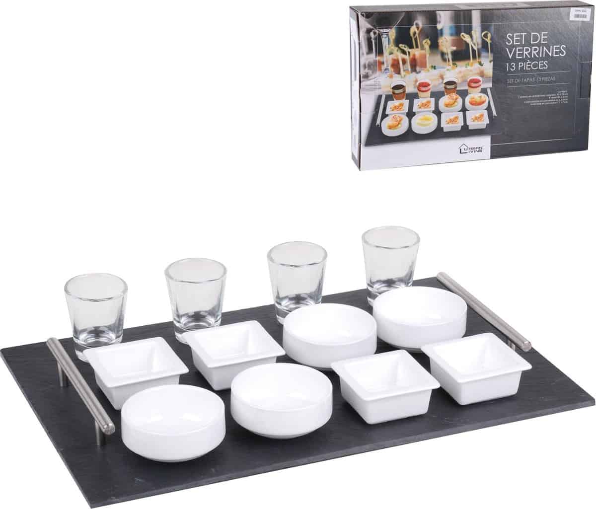 Service à tapas de 13 pièces en verres en porcelaine